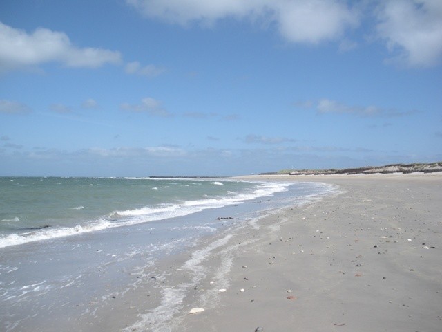 Die "Witte Kliff" pendelt alle halbe Stunde zwischen Hauptinsel und Düne. Der feinsandige und weiße Sandstrand lädt zu Strandaktivitäten oder -passivitäten aller Art ein.